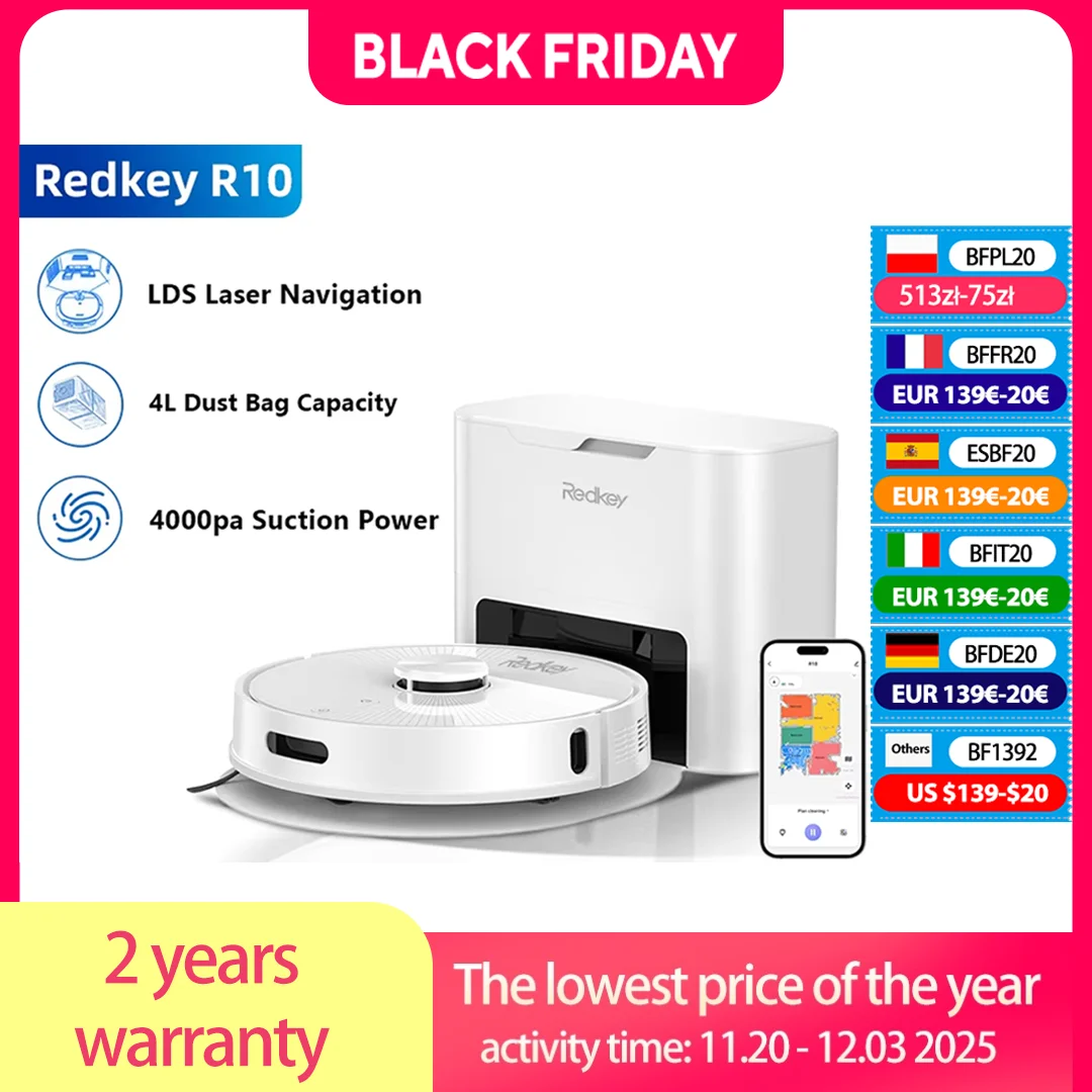 – Collecte automatique de la poussière :Le système de dépoussiérage automatique du Redkey R10 comprend un sac à poussière de 4 L et un ventilateur de dépoussiérage de 1 000 W, offrant une expérience de nettoyage puissante et efficace.